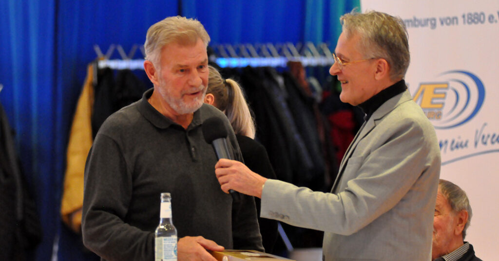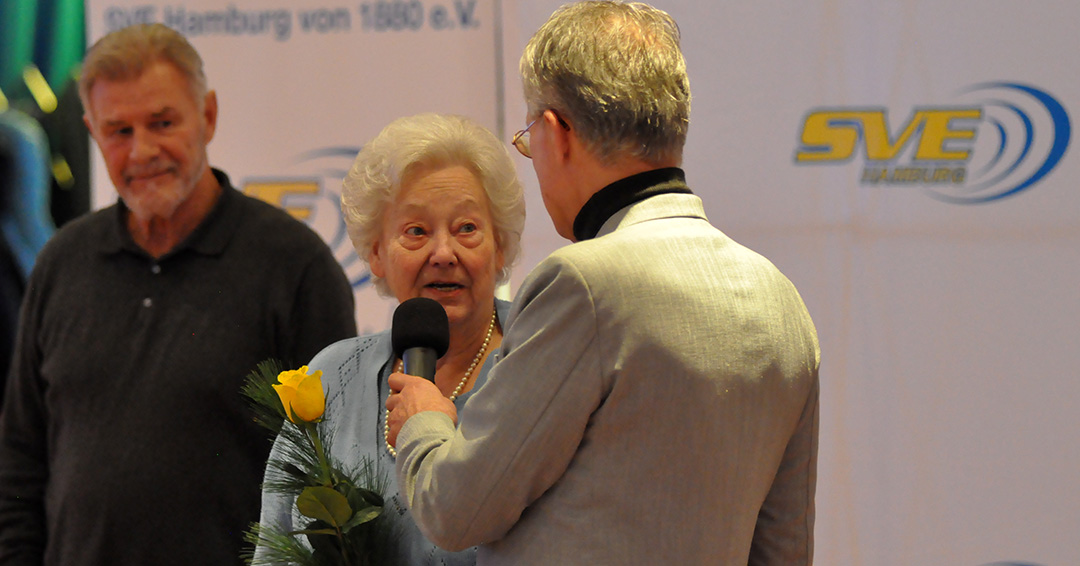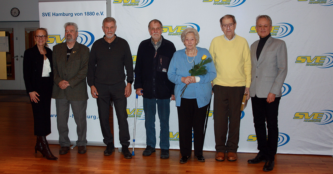Gleich vier Jubilare feierten ihr 75-jähriges Vereinsjubiläum. Wolfgang Hesse, Lieselotte Kastorf, Volker Hartmann und Christa Burmeister, die von ihrer langen Zeit als Handballerin im SVE erzählte. Stolze 80 Jahre ist Hans-Jürgen Hartmann im Verein, er konnte aus gesundheitlichen Gründen leider nicht vor Ort sein.