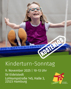 Am Kinderturn-Sonntag, den 9. November 2025, öffnet der SV Eidelstedt seine Türen und baut einen großen Bewegungsparcours auf.