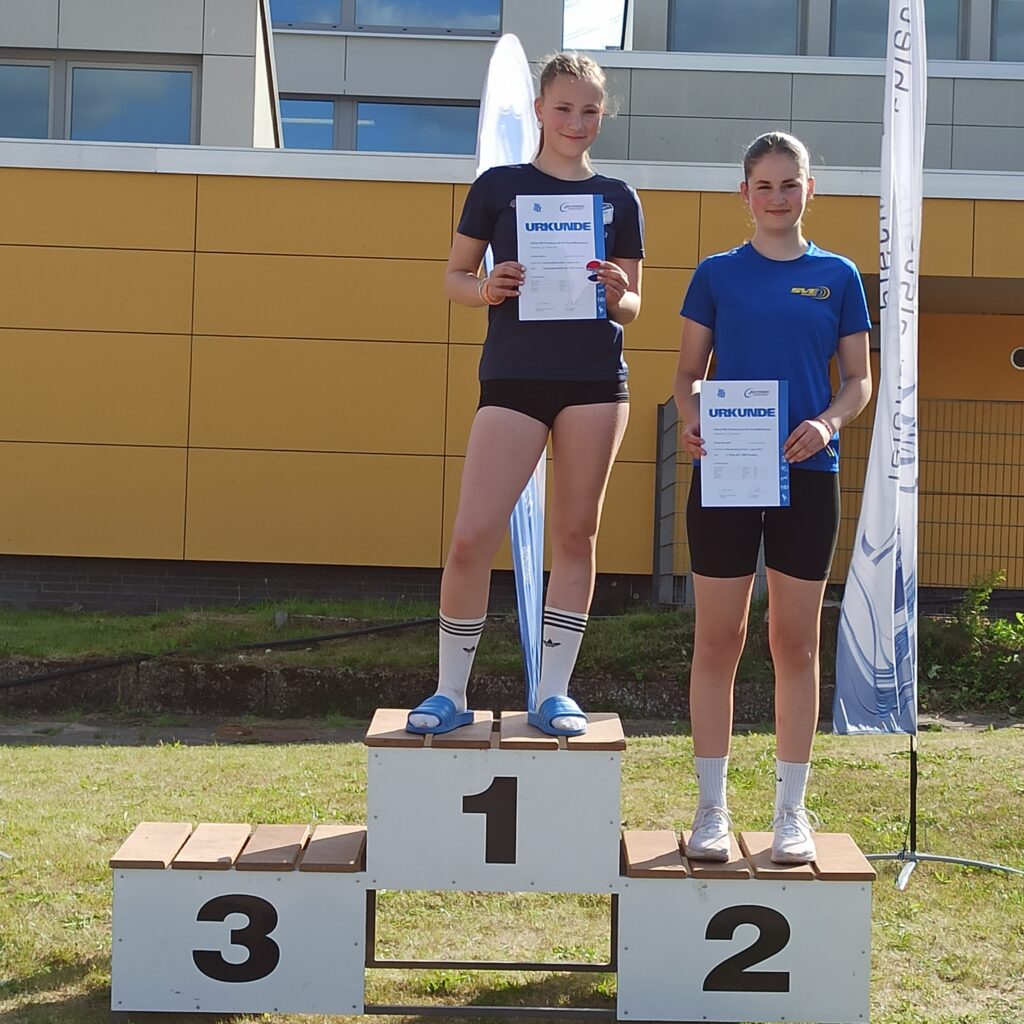 In der Altersklasse der W8 war mit 18 Kindern das größte Teilnehmerfeld am Start. Luise Riemer erreichte im 50m Lauf die schnellste Zeit und im Weitsprung die zweitbeste Weite. Zusammen mit dem Ballwurf ergab dies am Ende Platz 5. Amelia Batke erreichte mit einem in allen Disziplinen sehr guten Wettkampf Platz 6. Aarunya Ganesh belegte nach einem beherzten Wettkampf am Ende Platz 17. Die Altersklasse der W9 dominierte Luzie Stöter mit 8,95s über die 50m, 23,5m im Ballwurf und 3,32m im Weitsprung. Sie landete damit mit weitem Vorsprung auf Platz 1. In dieser Gruppe verpasste Marlene Reimer auf Platz 4 nur ganz knapp (mit 13 Punkten Rückstand) das Podest. Dafür ergaben diese Leistungen in der Mannschaftswertung der U10 für Luzie, Marlene und Luise einen starken 1. Platz!