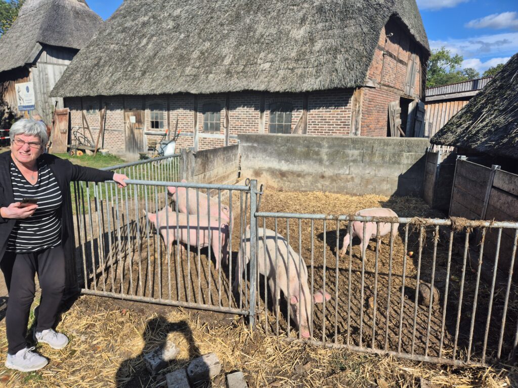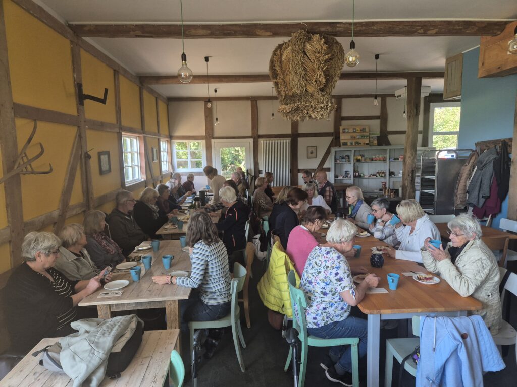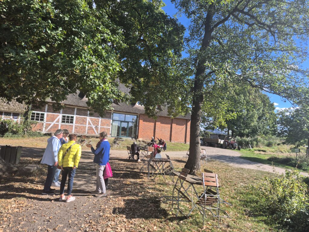 Nach diesem eindrucksvollen Besuch ging die Fahrt weiter zum Hof Eggers. Dort wurden wir herzlich empfangen und konnten uns bei Kaffee und frischem Kuchen stärken. In geselliger Runde ergaben sich viele Gespräche, sodass die Stimmung sich wieder aufhellte. Im Anschluss bestand noch die Möglichkeit, den Hof mit seinen Tieren zu besichtigen und die ländliche Atmosphäre zu genießen.